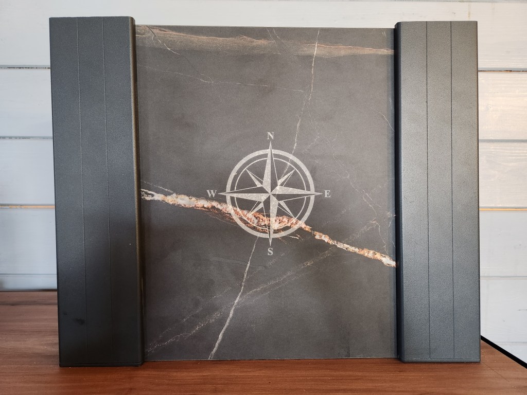 Structure RAL 7016, panneau finition marbre veiné flamme NOUVEAUTE 2014 (présenté avec gravure rose des vents).